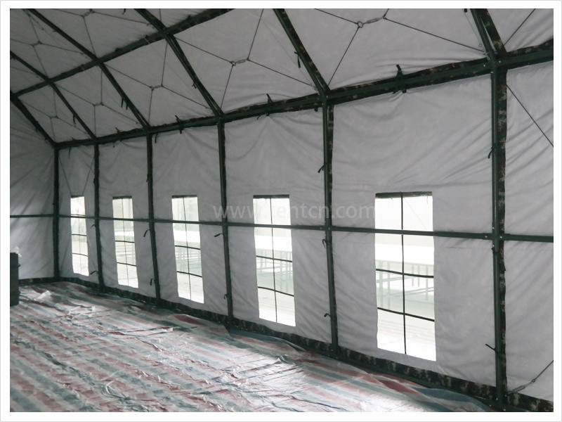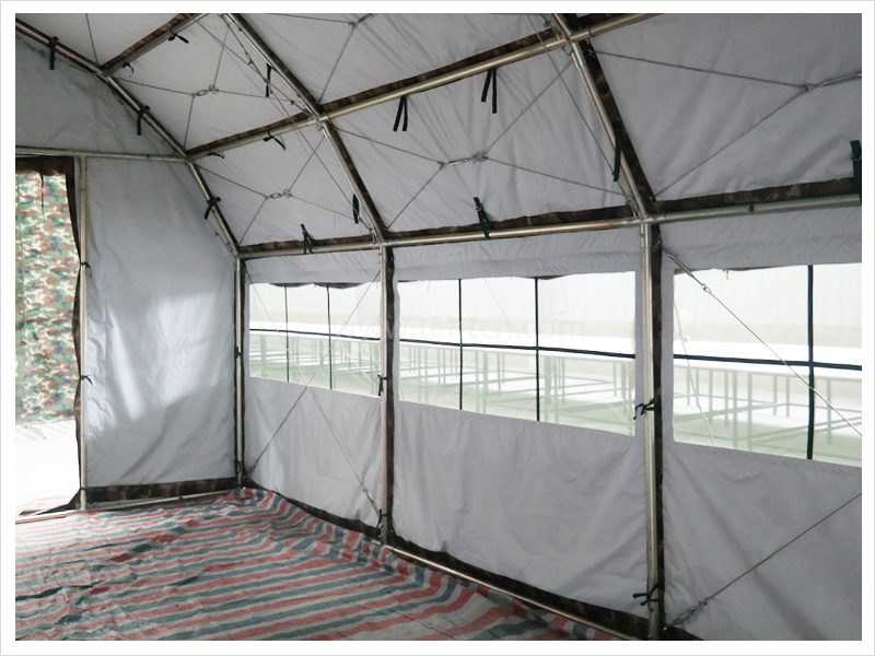 該帳篷結(jié)構(gòu)合理、空間開闊、安全可靠。穩(wěn)定性能優(yōu)良,抗風(fēng)承載、抗雪承載能力強(qiáng)。采用套管式通頭、彈簧插銷連接,互換性強(qiáng),無(wú)需任何組裝工具即可安裝替換。篷布采用滌綸草綠(林地?cái)?shù)碼)防水帆布,里布采用本白牛津布。其在抗拉、抗撕裂、耐老化、防雨等方面性能優(yōu)良。
