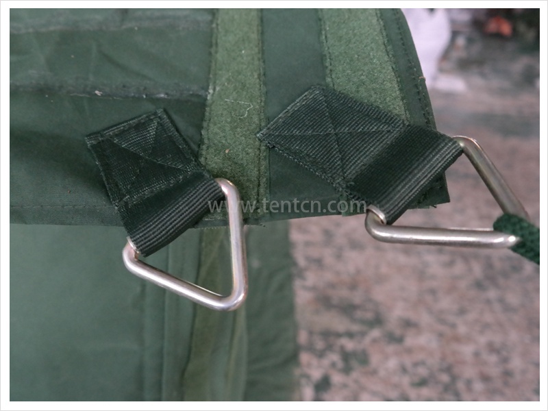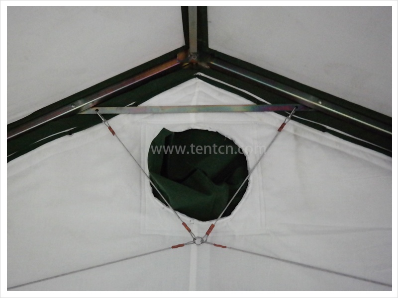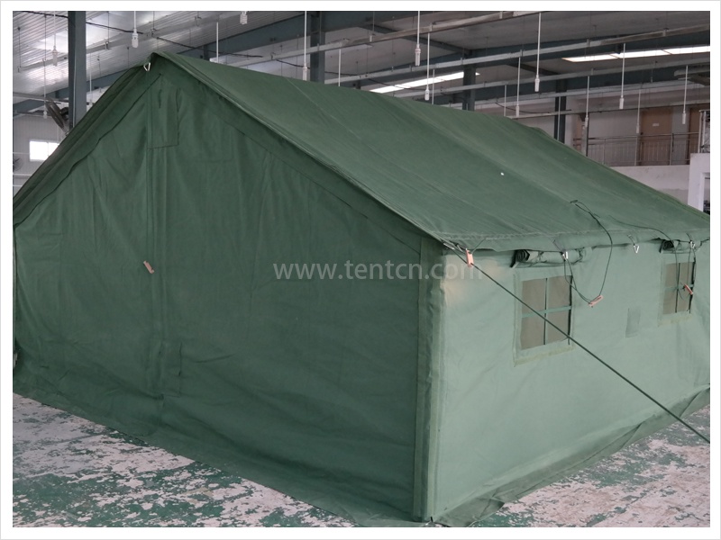 帳篷為框架式結構,結構簡單、質量輕。具有縱向組合功能,可擴大使用面積。立柱插入斜梁之中,有效減少了包裝件數(shù)和體積。架設、撤收方便,機動性好,是現(xiàn)下野戰(zhàn)部隊應用最為廣泛的野外帳篷之一。